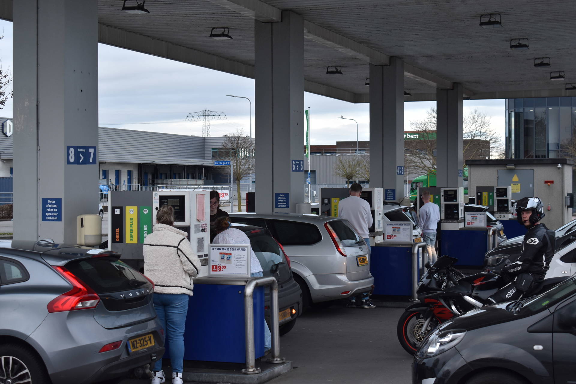 Het beeld verschilde per locatie. Waar bij andere tankstations in de gemeente minder drukte werd gemeld, stond bij het tankstation aan het Kattegat een duidelijke wachtrij.
