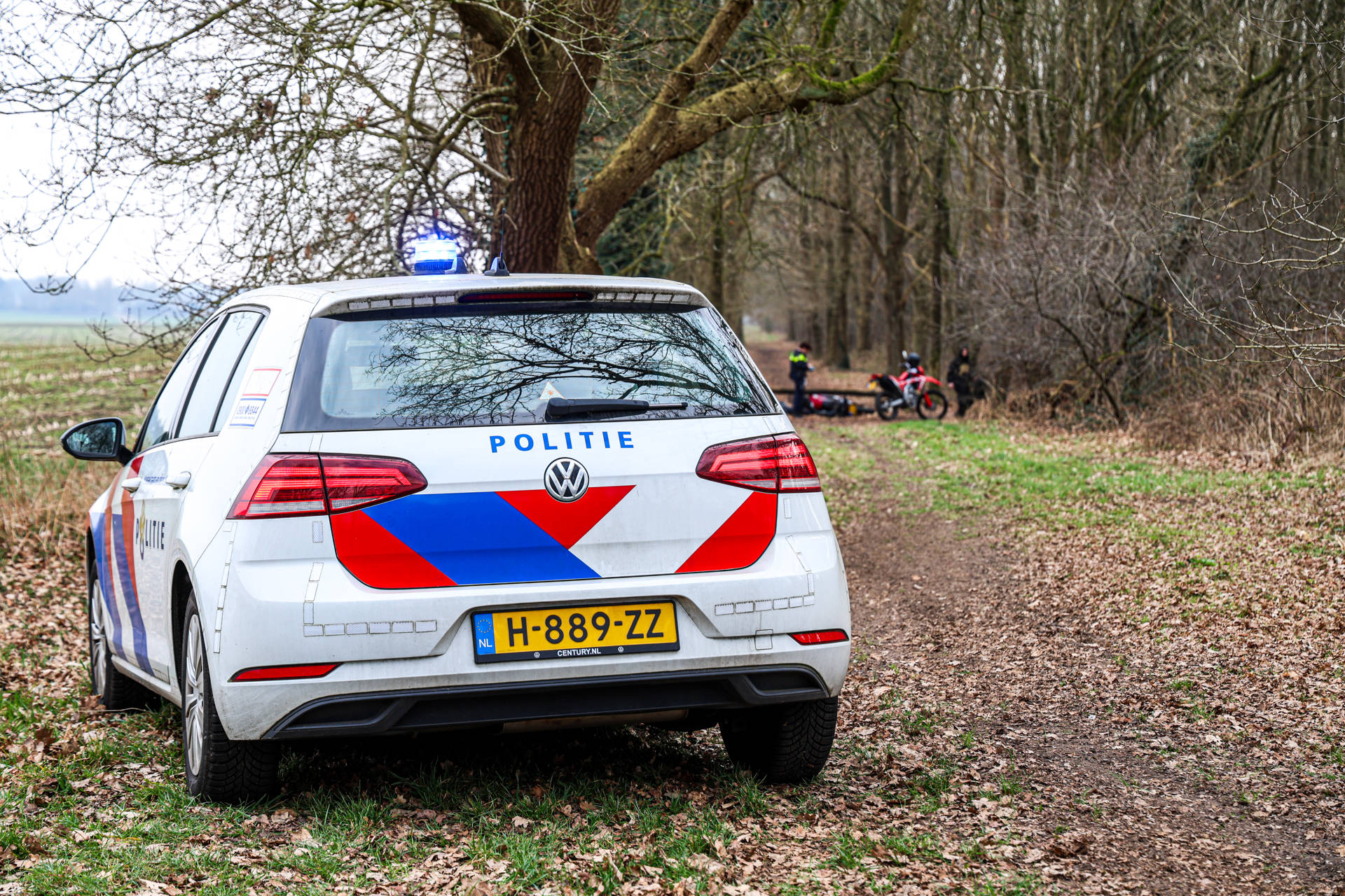 Bij de ingang van het bos staat een hekje om gemotoriseerd verkeer te weren. Eén van de motorrijders merkte dit te laat op. Hij probeerde nog hard te remmen, maar verloor de controle over zijn motor. Het voertuig raakte in een slip, waarna zowel de bestuurder als de motor onderuit gingen en onder het hekje doorschoten.