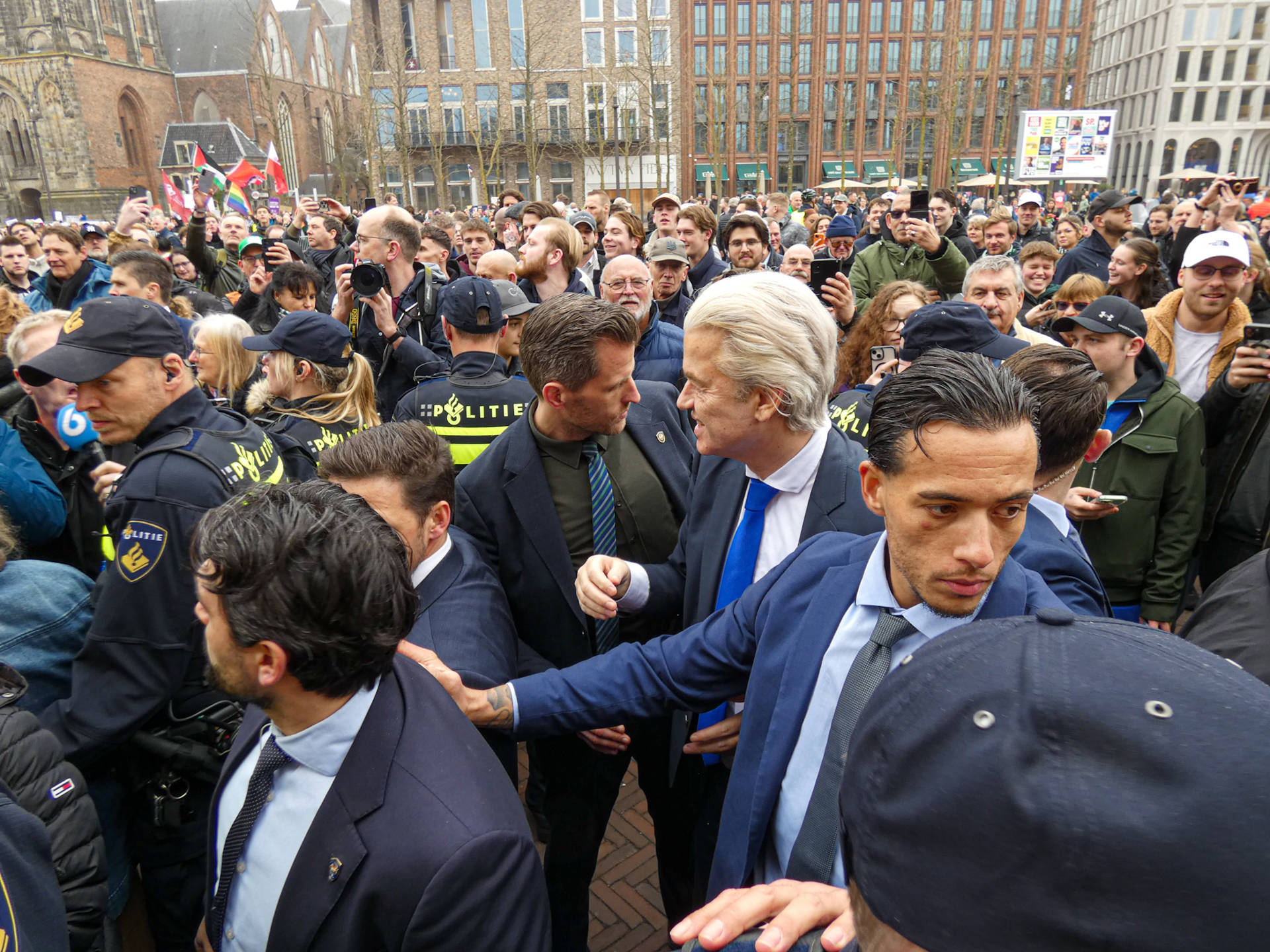 GRONINGEN – PVV-leider Geert Wilders is omstreeks 13.00 uur aangekomen op de Grote Markt in Groningen voor zijn zogenoemde AZC-tour. Met deze tour reist hij langs verschillende plaatsen in Nederland om aandacht te vragen voor het asielbeleid. Hoe lang zijn bezoek aan de stad duurt, is niet bekend.