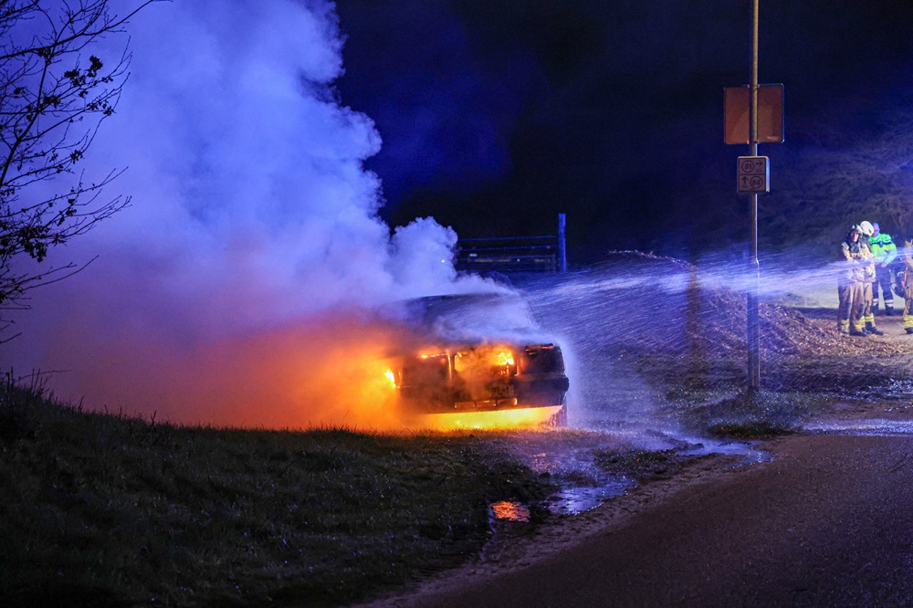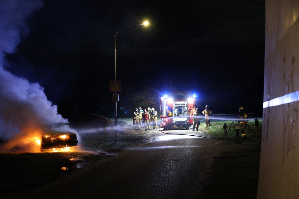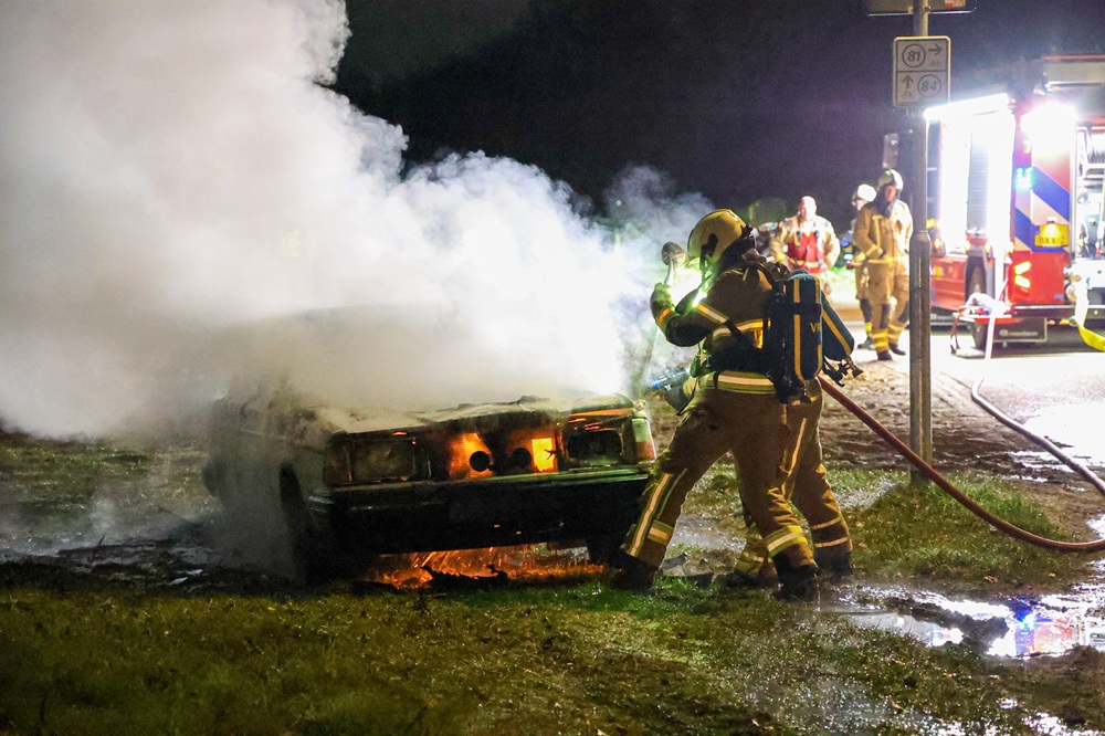 Bij aankomst van de brandweer stond het voertuig, een oudere Volvo, volledig in brand. Een tankautospuit en een waterwagen werden ingezet om het vuur te bestrijden. Ondanks de snelle inzet brandde de auto volledig uit. Brandweerlieden voerden sloopwerkzaamheden uit om resterende brandhaarden in het motorcompartiment te blussen.