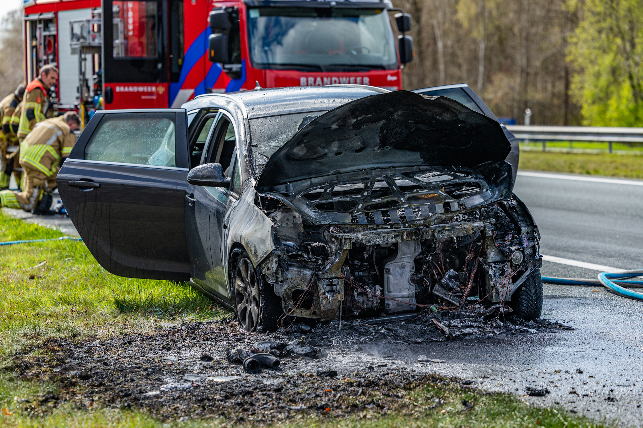 Rond 14.05 uur kwam de melding binnen. Bij aankomst stond het voertuig volledig in brand. Ondanks de snelle inzet van de brandweer kon niet worden voorkomen dat de auto nagenoeg volledig uitbrandde.