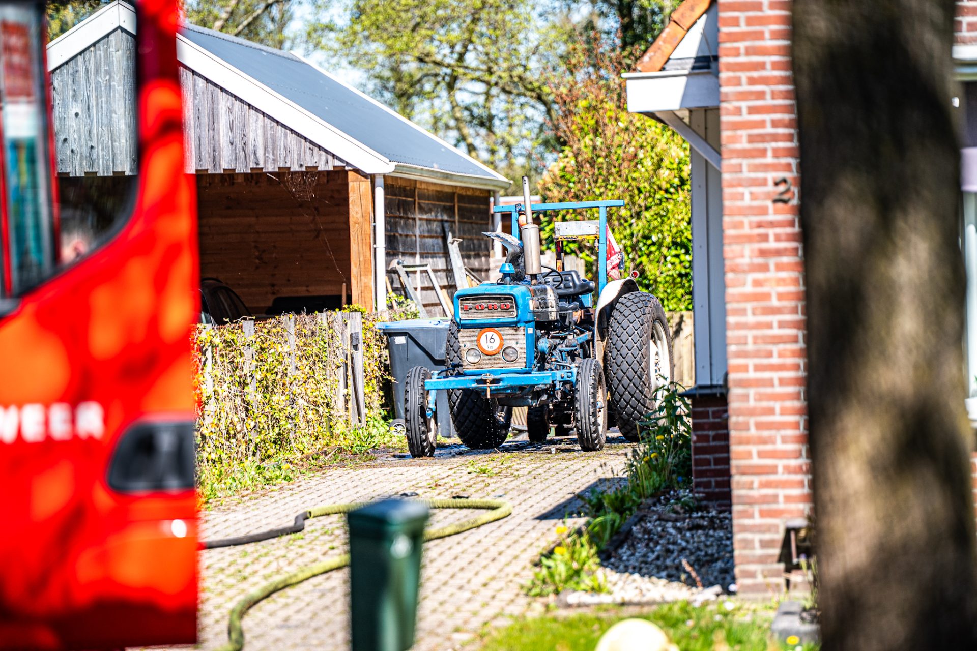 Rond 14:47 uur kwamen de hulpdiensten met spoed ter plaatse na een melding van brand in een trekker. Het voertuig stond bij aankomst bij een woning en bleek al in brand te staan.