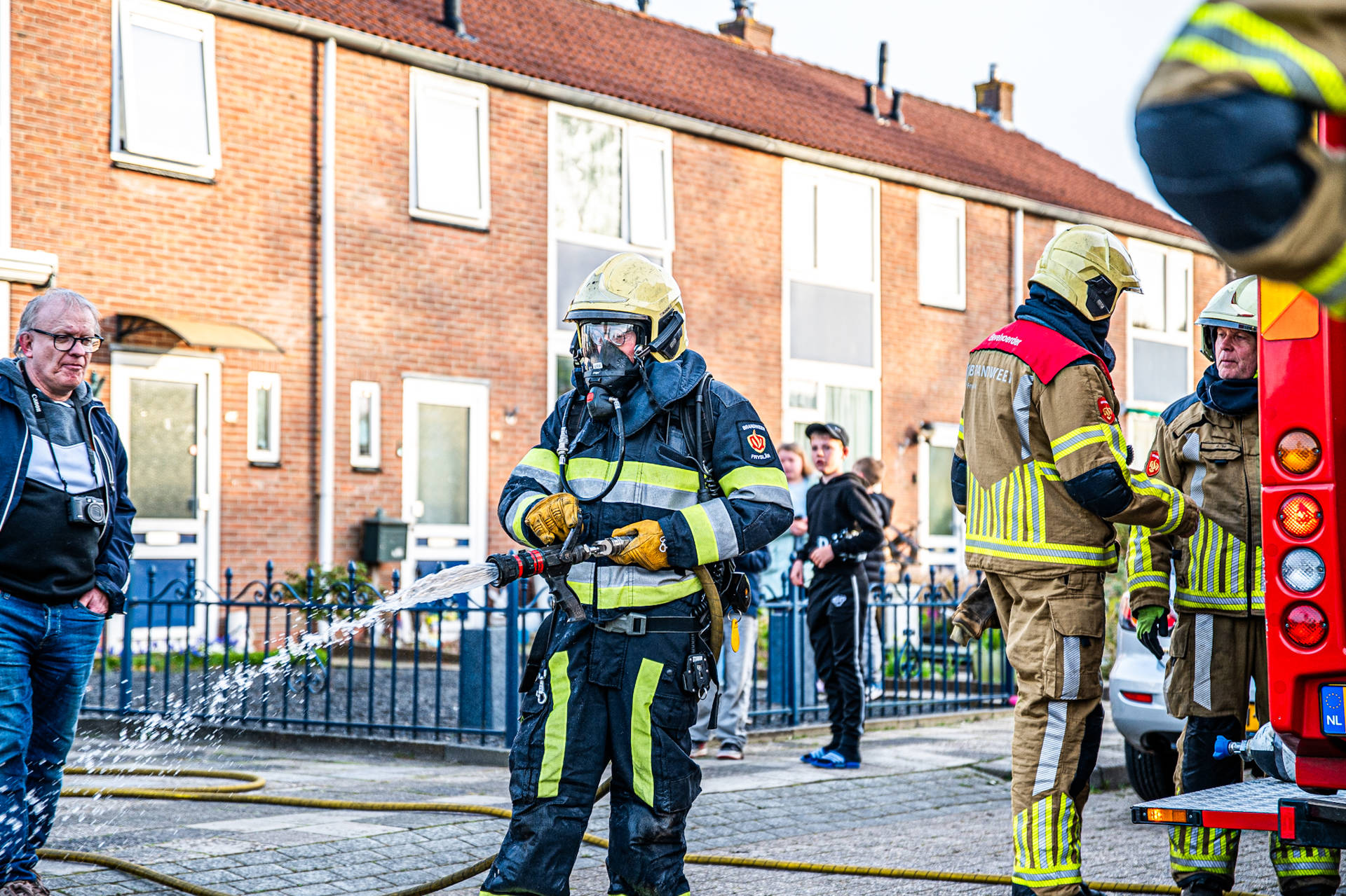 Bij aankomst had de brandweer de situatie snel onder controle. De brand dreigde over te slaan naar het dak, maar dat kon worden voorkomen. Toen de hulpdiensten arriveerden, hadden de bewoners zelf al een bluspoging gedaan.