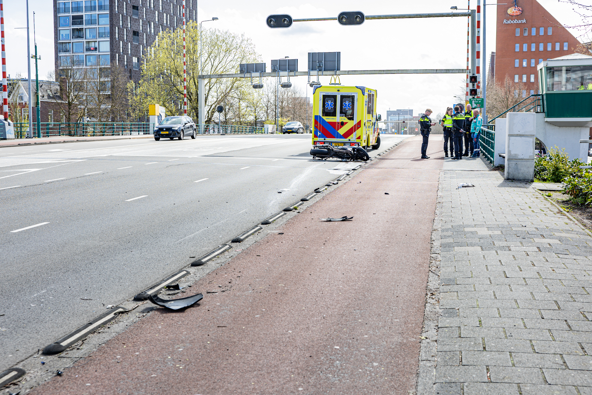 GRONINGEN – Een motorrijder is zondagmiddag gewond geraakt bij een verkeersongeval op de Oosterhavenbrug in de stad.