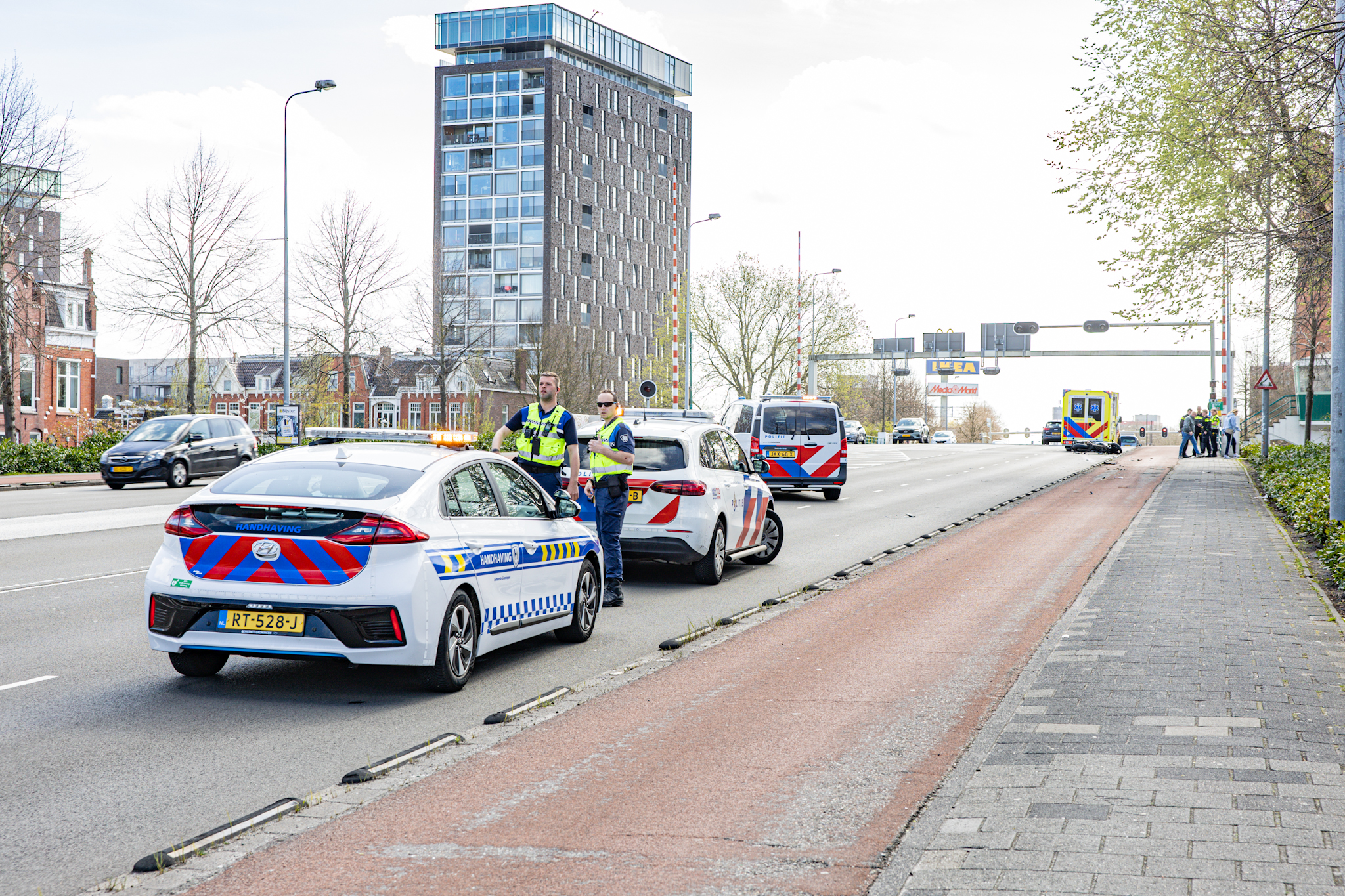 Vanwege het ongeval zijn twee rijstroken afgesloten. Over de ernst van het letsel is nog niets bekend.