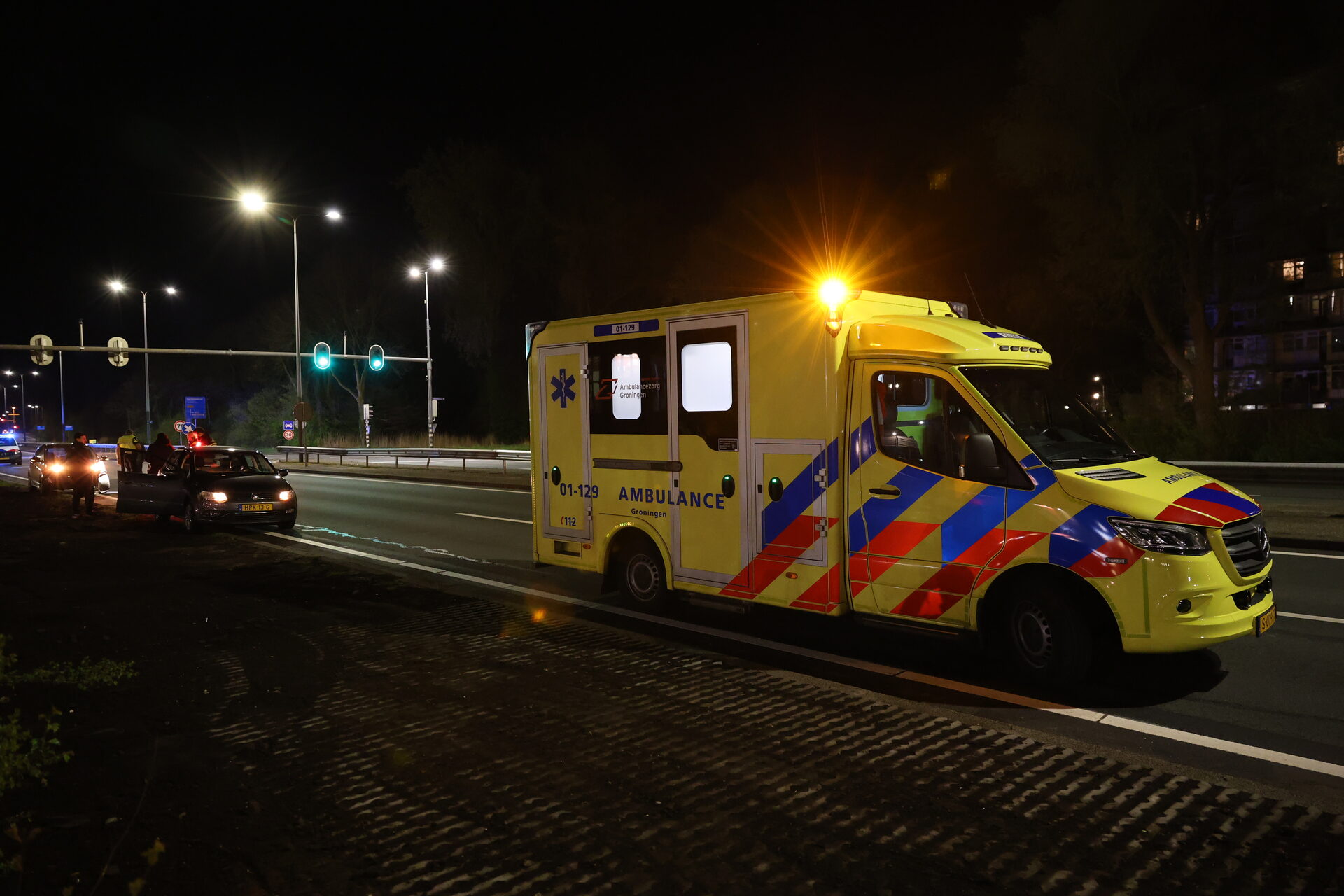 Persoon in ambulance behandeld na ongeval