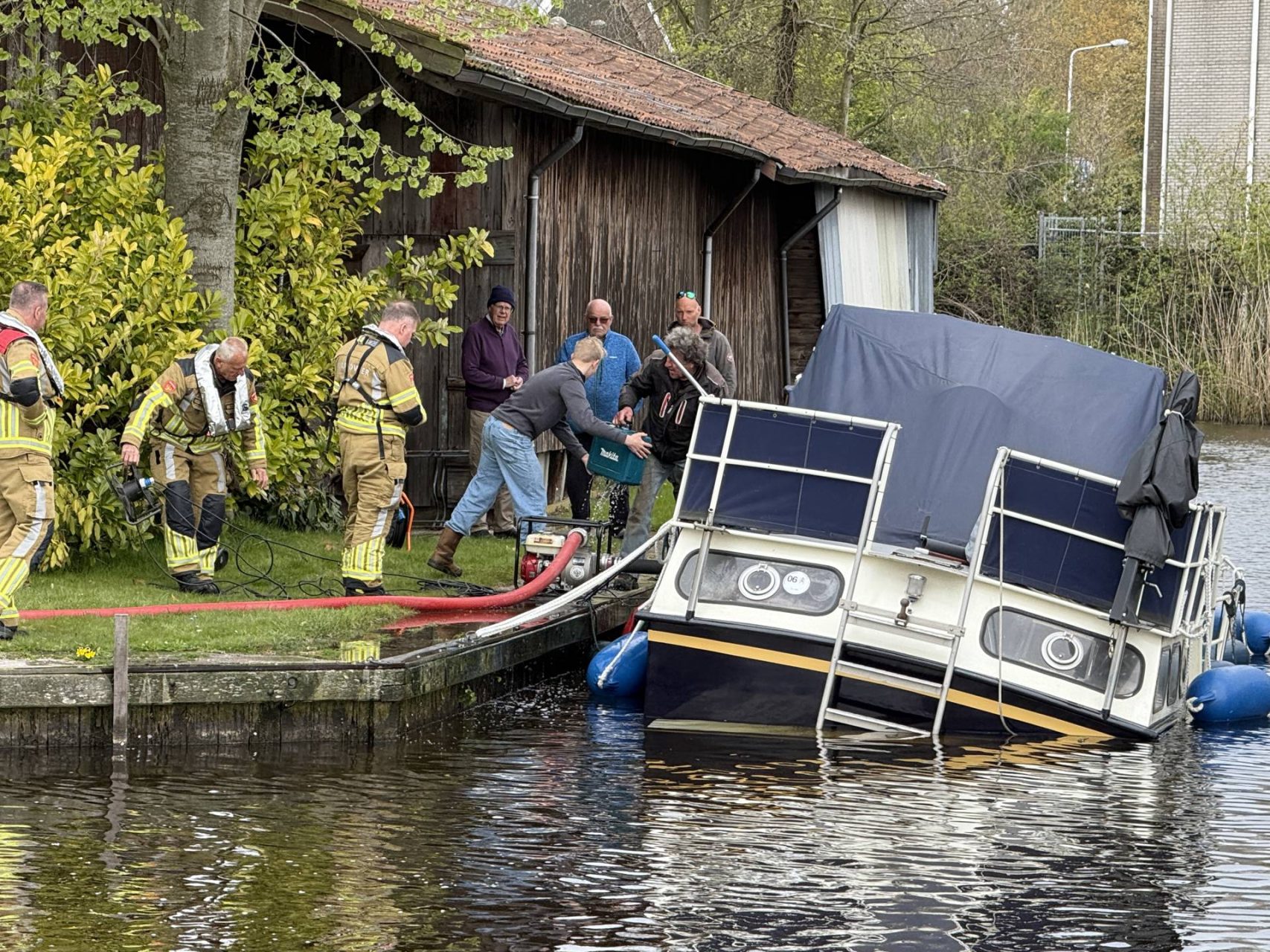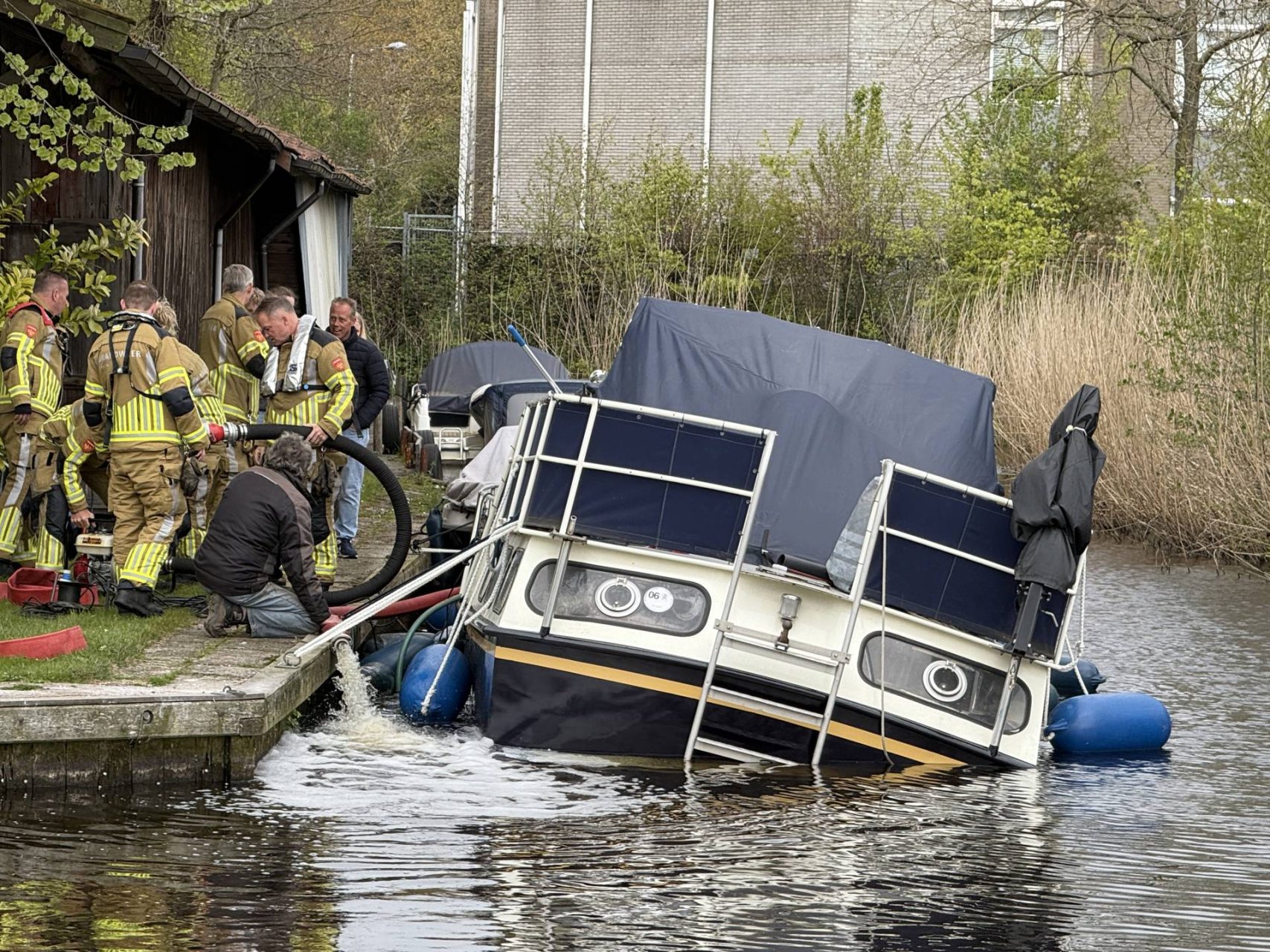 Plezierjacht zinkt in jachthaven en wordt leeggepompt