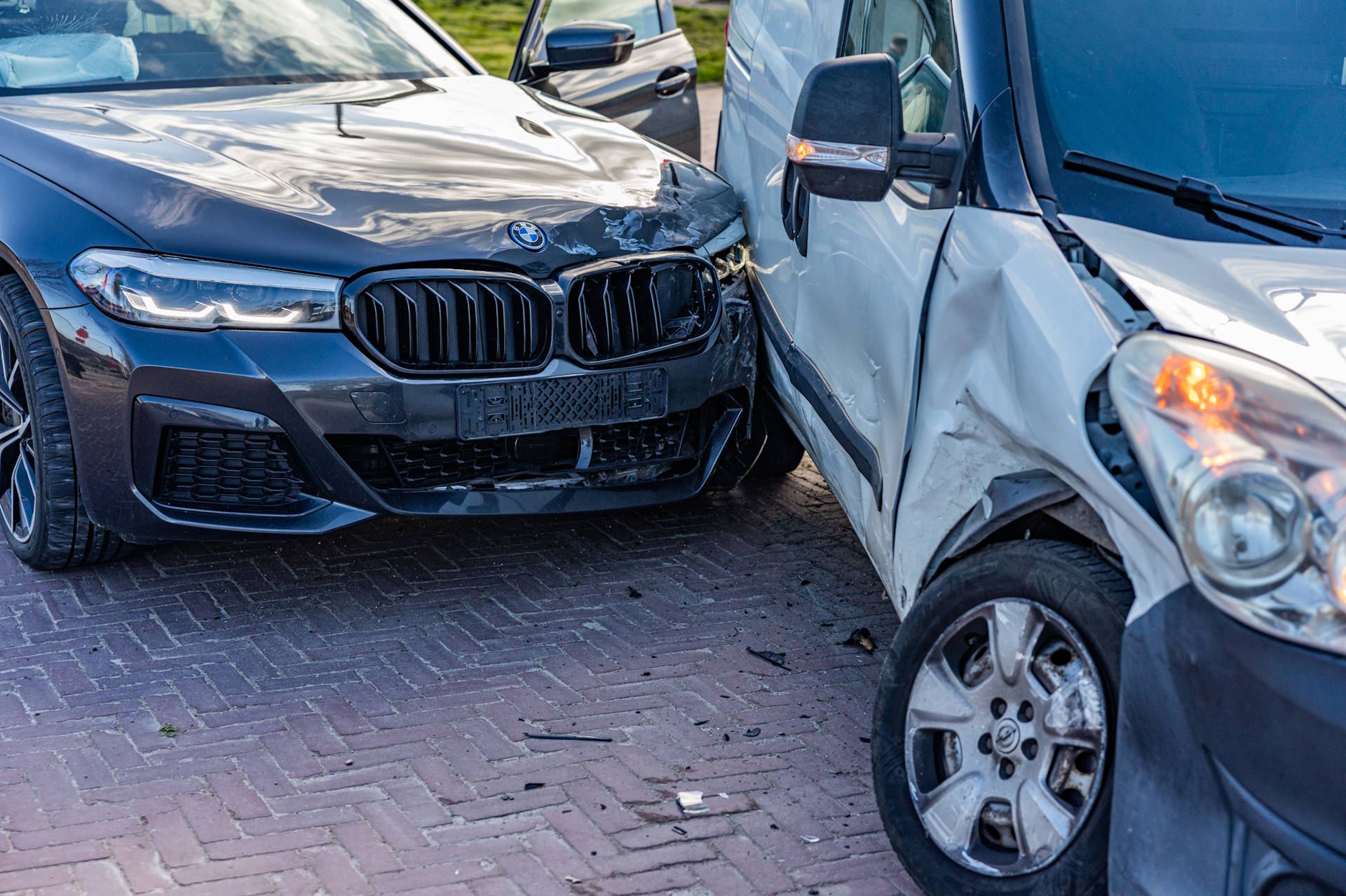 Het incident vond plaats in de middag, waarbij de voertuigen door de klap aanzienlijke schade opliepen. De toedracht van de aanrijding is niet nader bekendgemaakt.