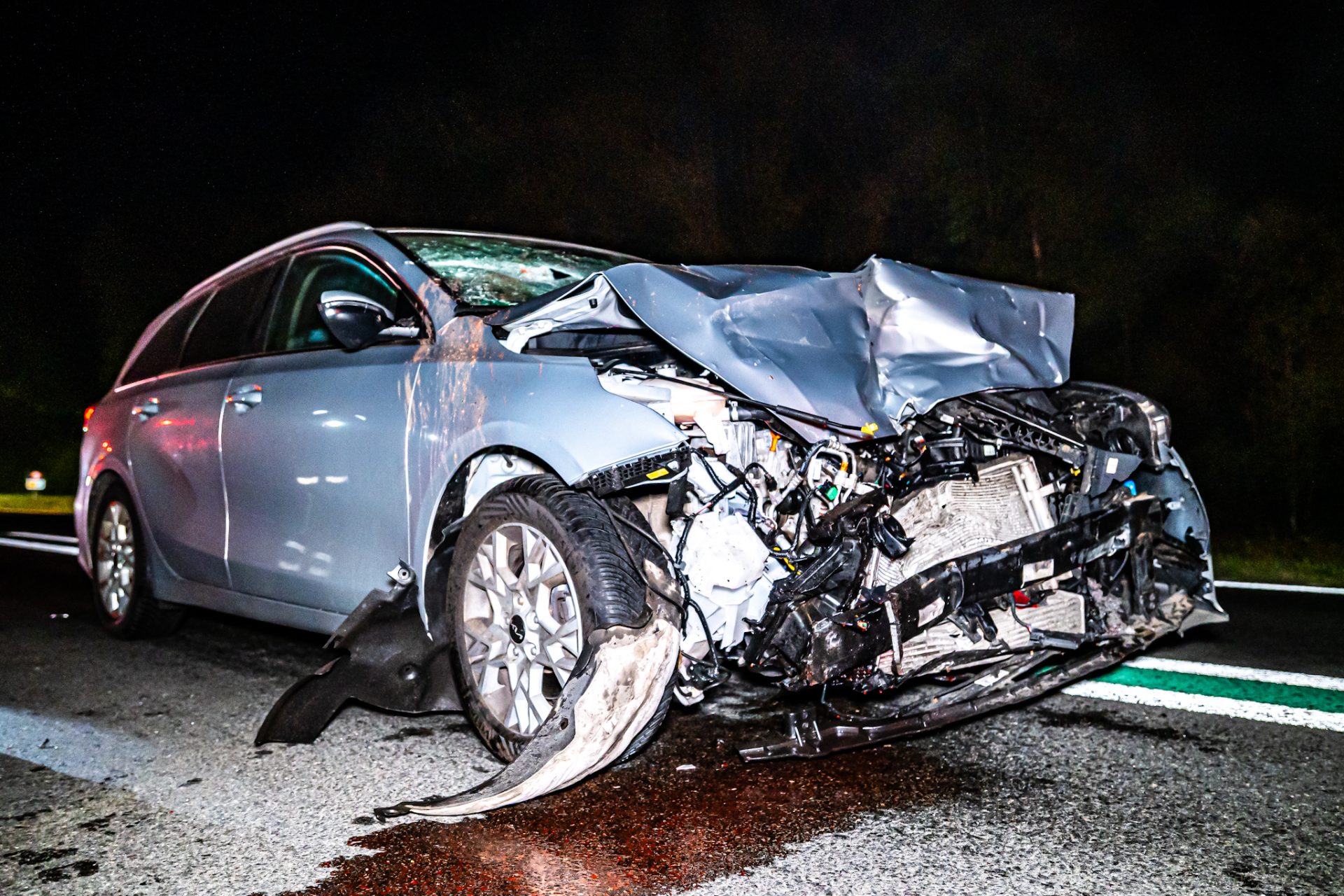 De bestuurster van de personenauto, een vrouw, werd ter plaatse gecontroleerd, maar raakte niet gewond. De oorzaak van het ongeval is nog onbekend. Eén rijstrook was tijdelijk afgesloten voor het overige verkeer.