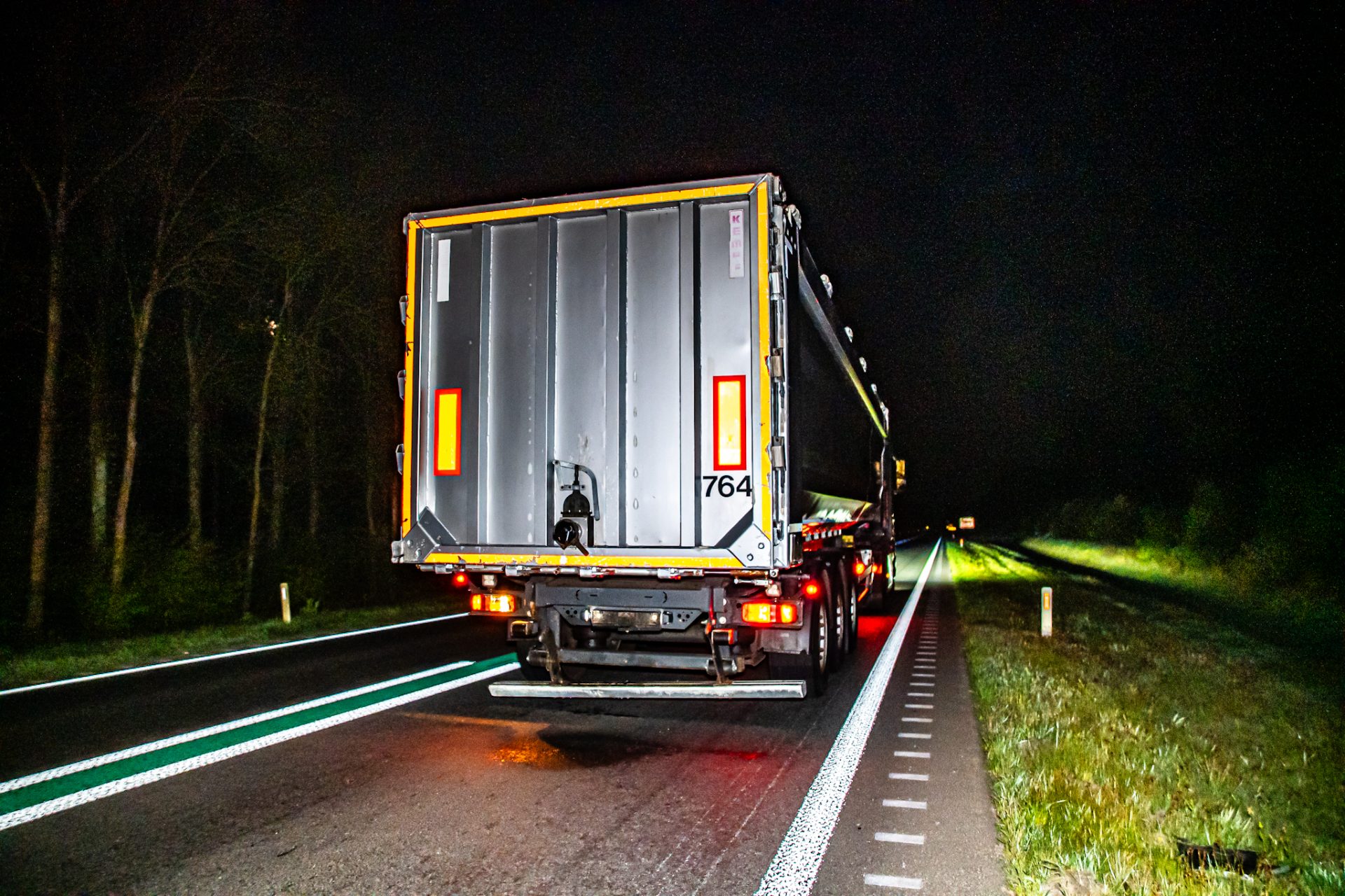 Bij aankomst bleek een personenauto onder een vrachtwagentrailer terecht te zijn gekomen, waardoor de auto flink beschadigd raakte. Een bergingsbedrijf werd ingeschakeld om zowel de personenauto als de vrachtwagen te bergen en de weg weer vrij te maken.