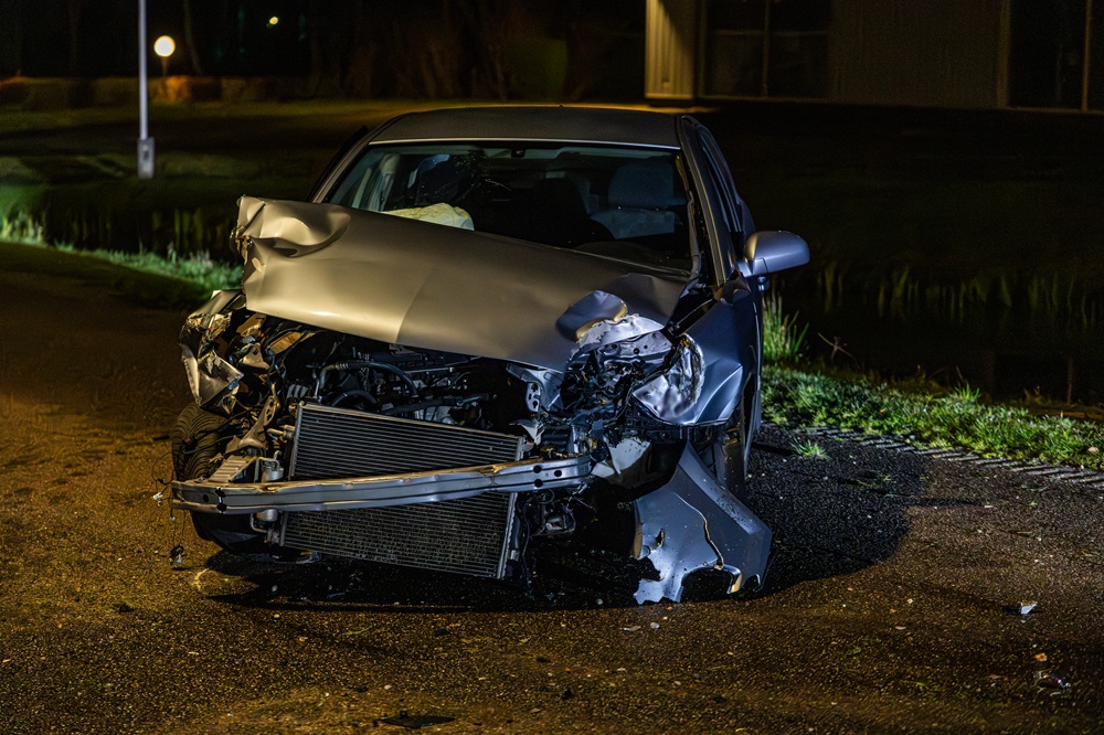 Auto zwaar beschadigd na botsing tegen wegversmalling