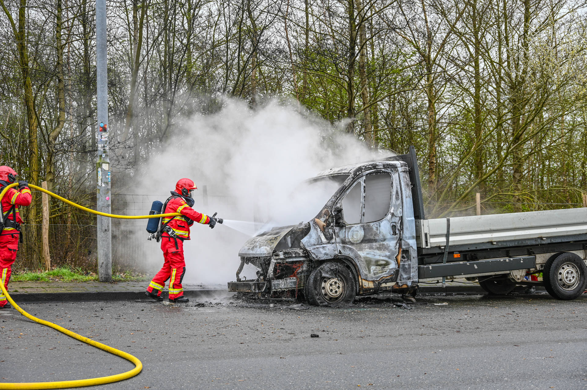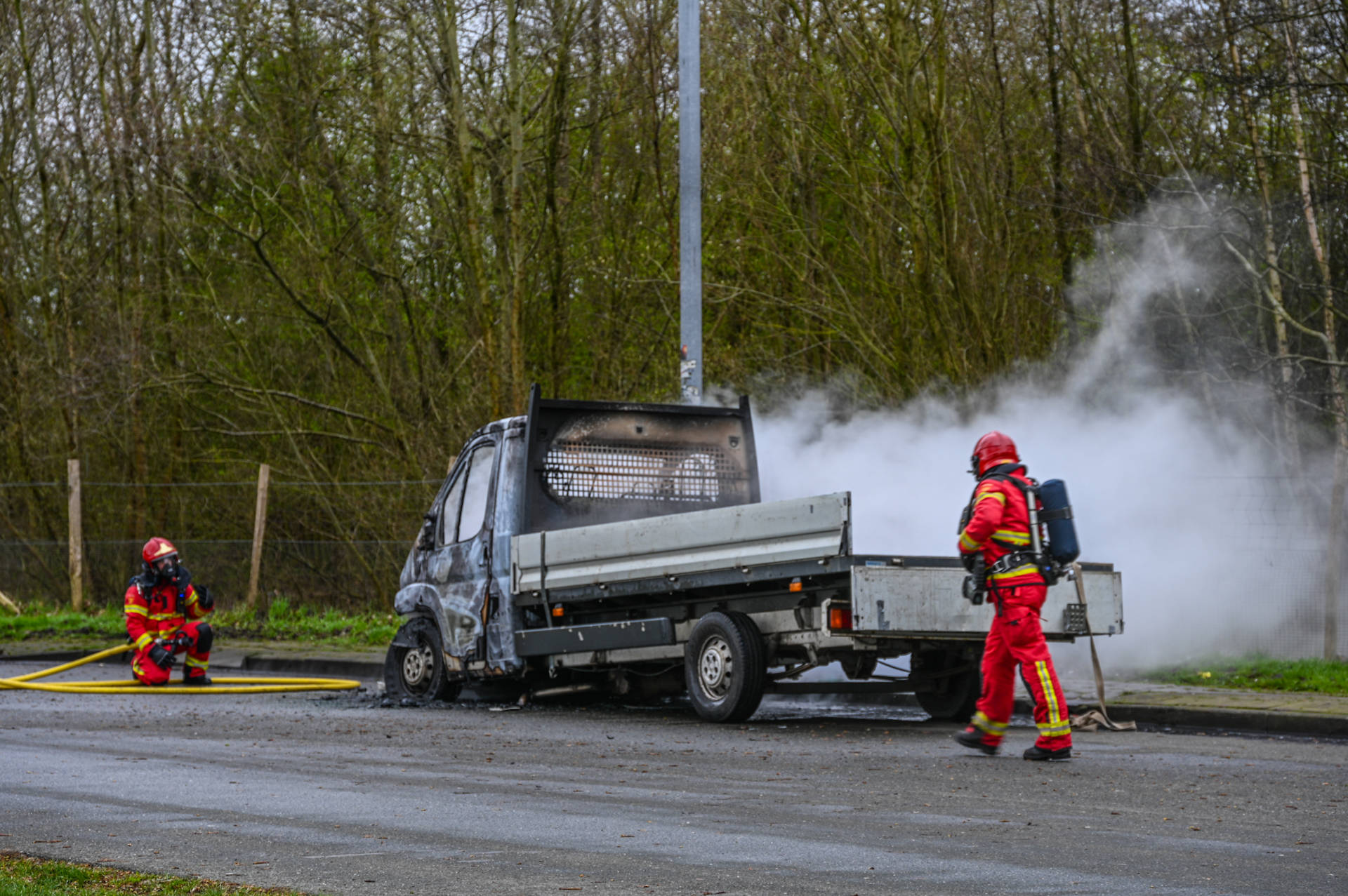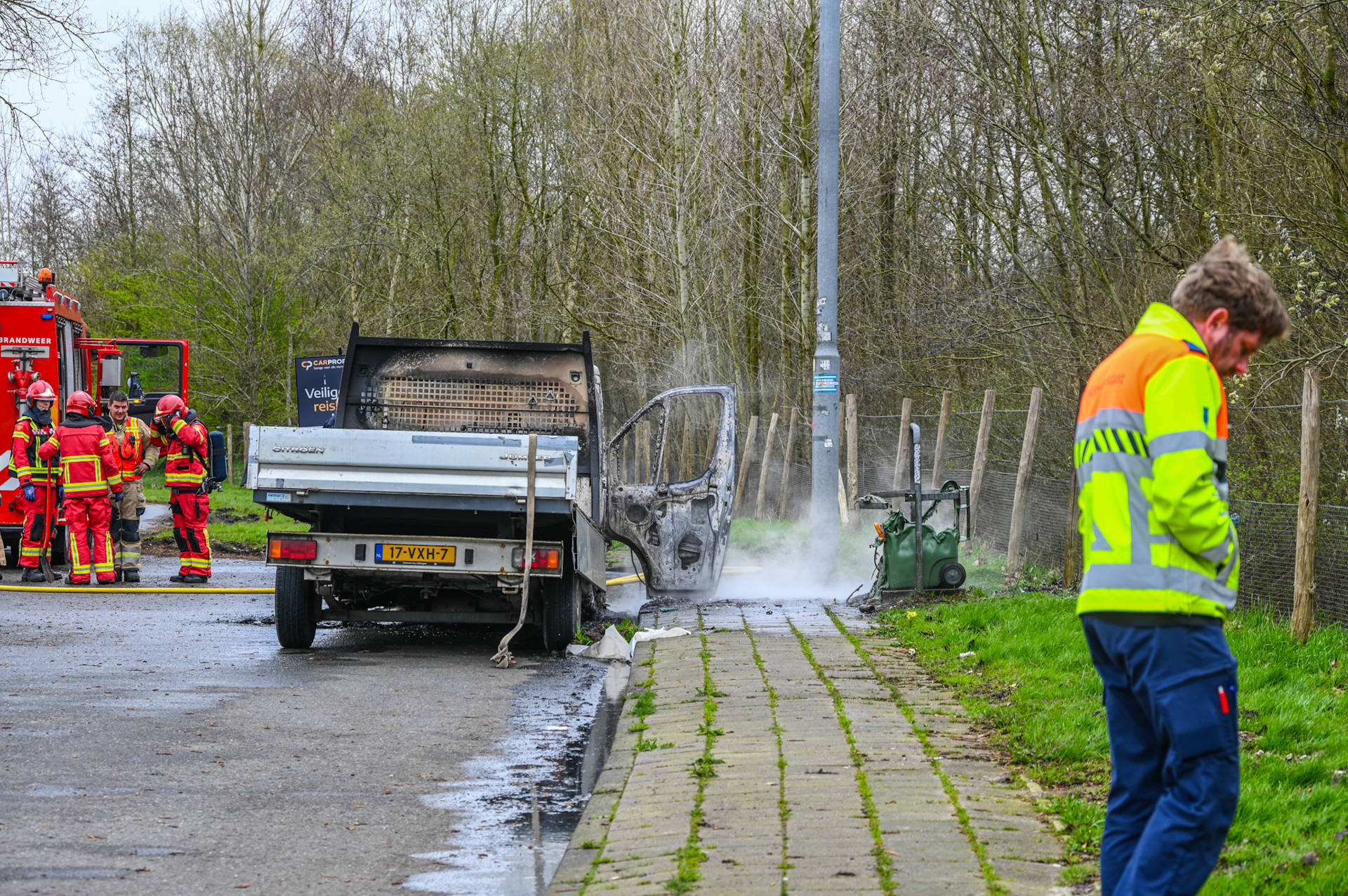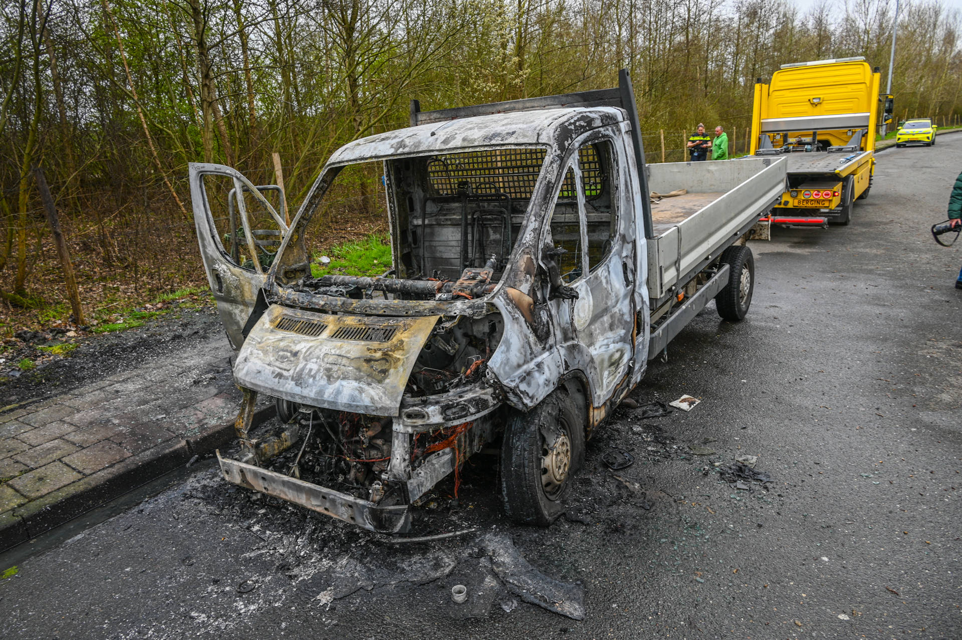 Bestelbus brandt volledig uit bij tankstation langs snelweg