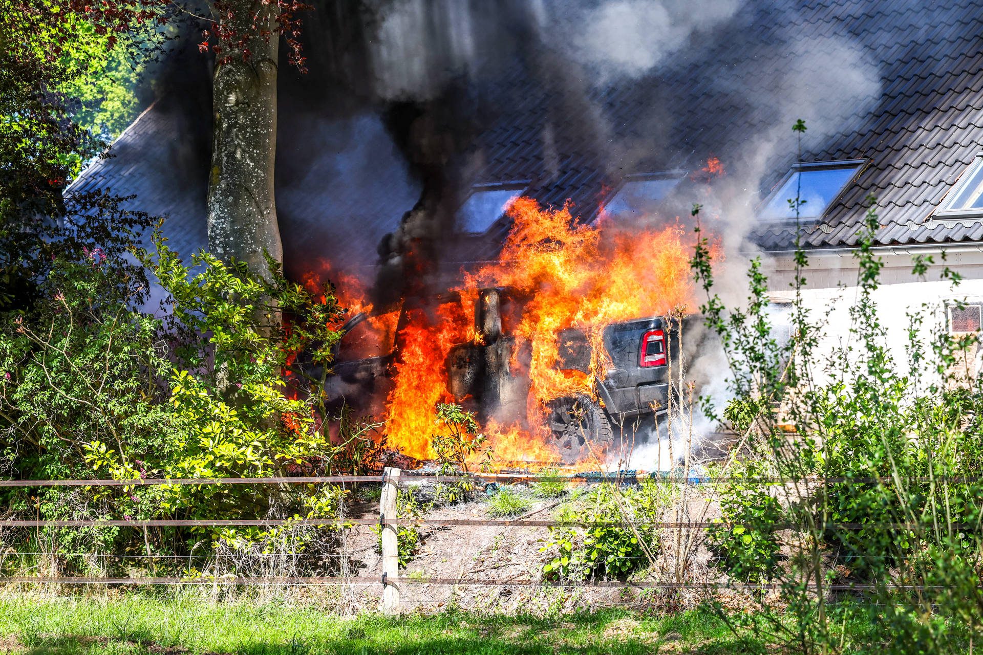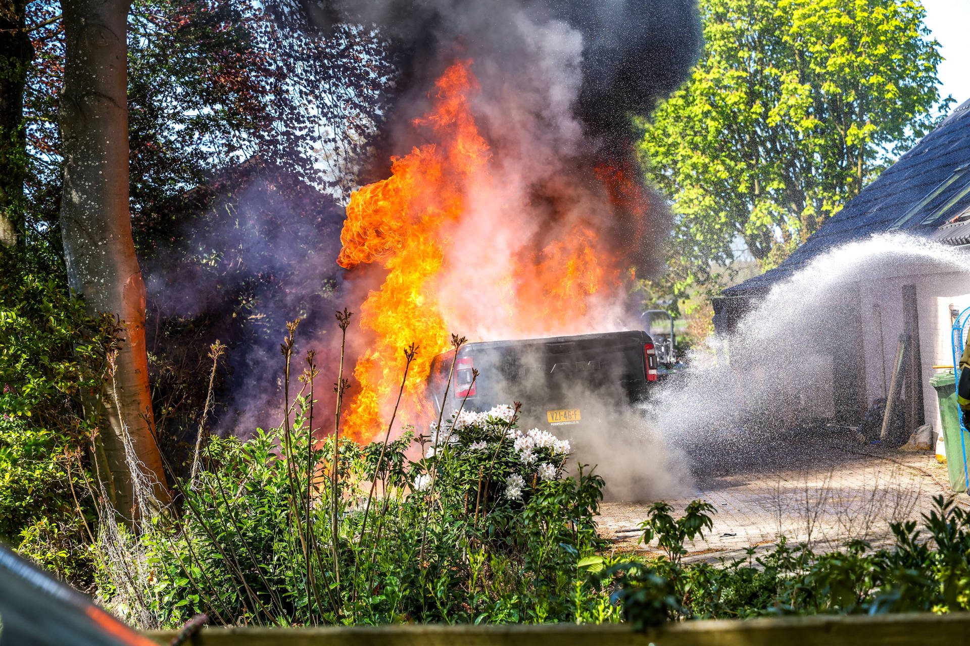 De brandweer startte onmiddellijk met een snelle blussing om te voorkomen dat de brand zou overslaan naar de woning. Helaas is de auto volledig uitgebrand.