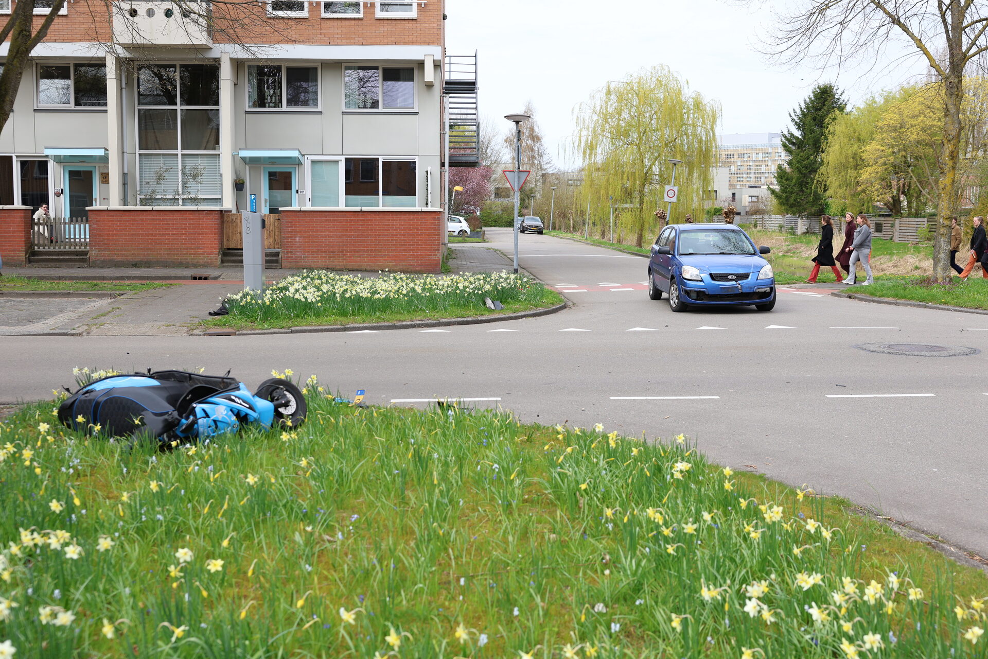 Het ongeluk gebeurde omstreeks 12:13 op de S.O.J. Palmelaan. Hulpdiensten waren snel ter plaatse. Een automobilist wilde vanaf de E.G. Balchstraat de S.O.J. Palmelaan oprijden en zag daarbij mogelijk de scooterrijder over het hoofd. De politie doet onderzoek.