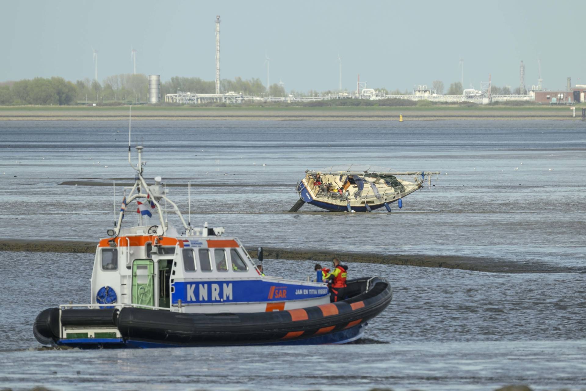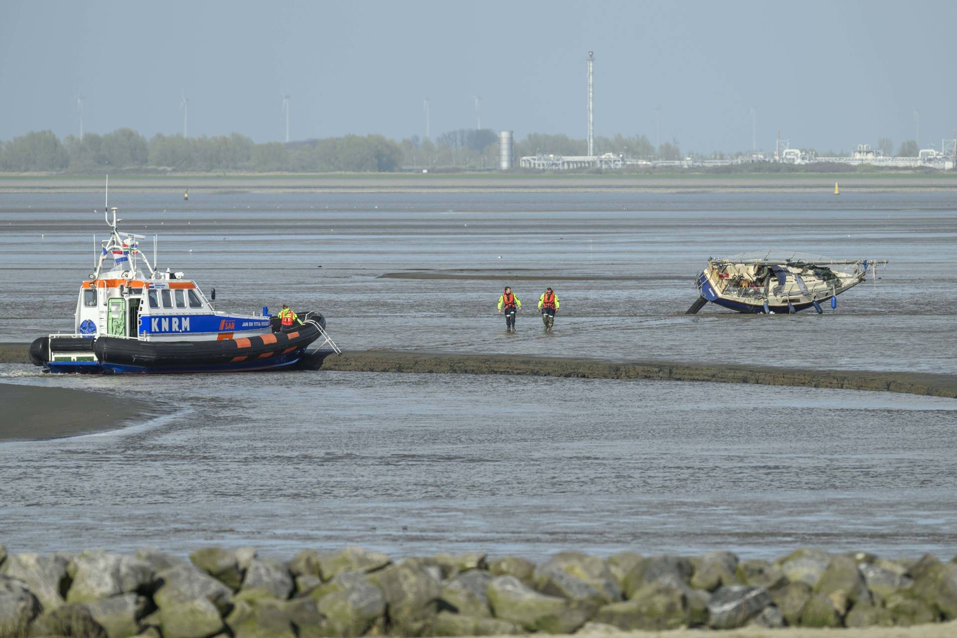 Zeiljacht loopt vast, KNRM wacht op hoog water