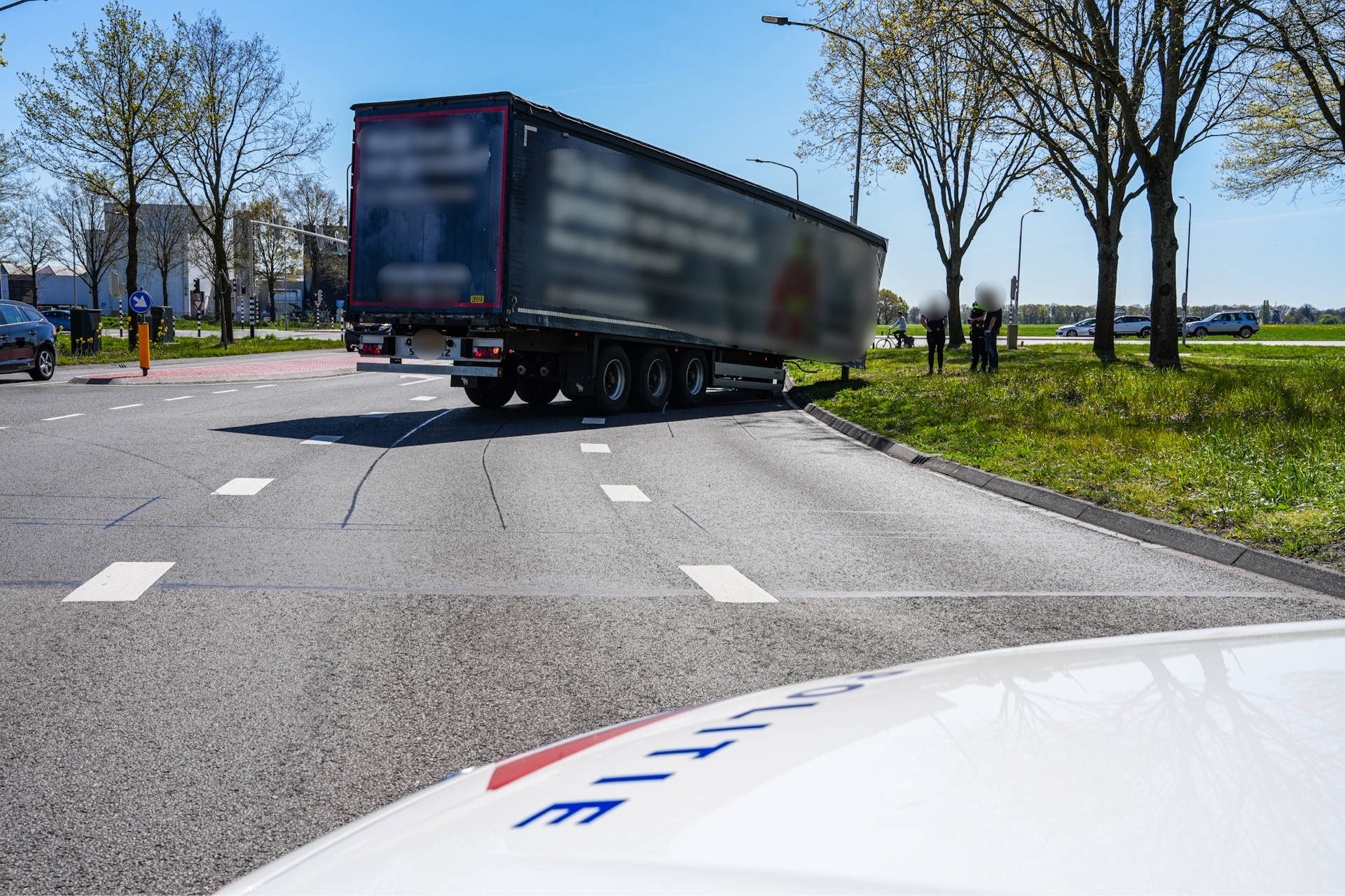 Vrachtwagen verliest oplegger, weg deels versperd