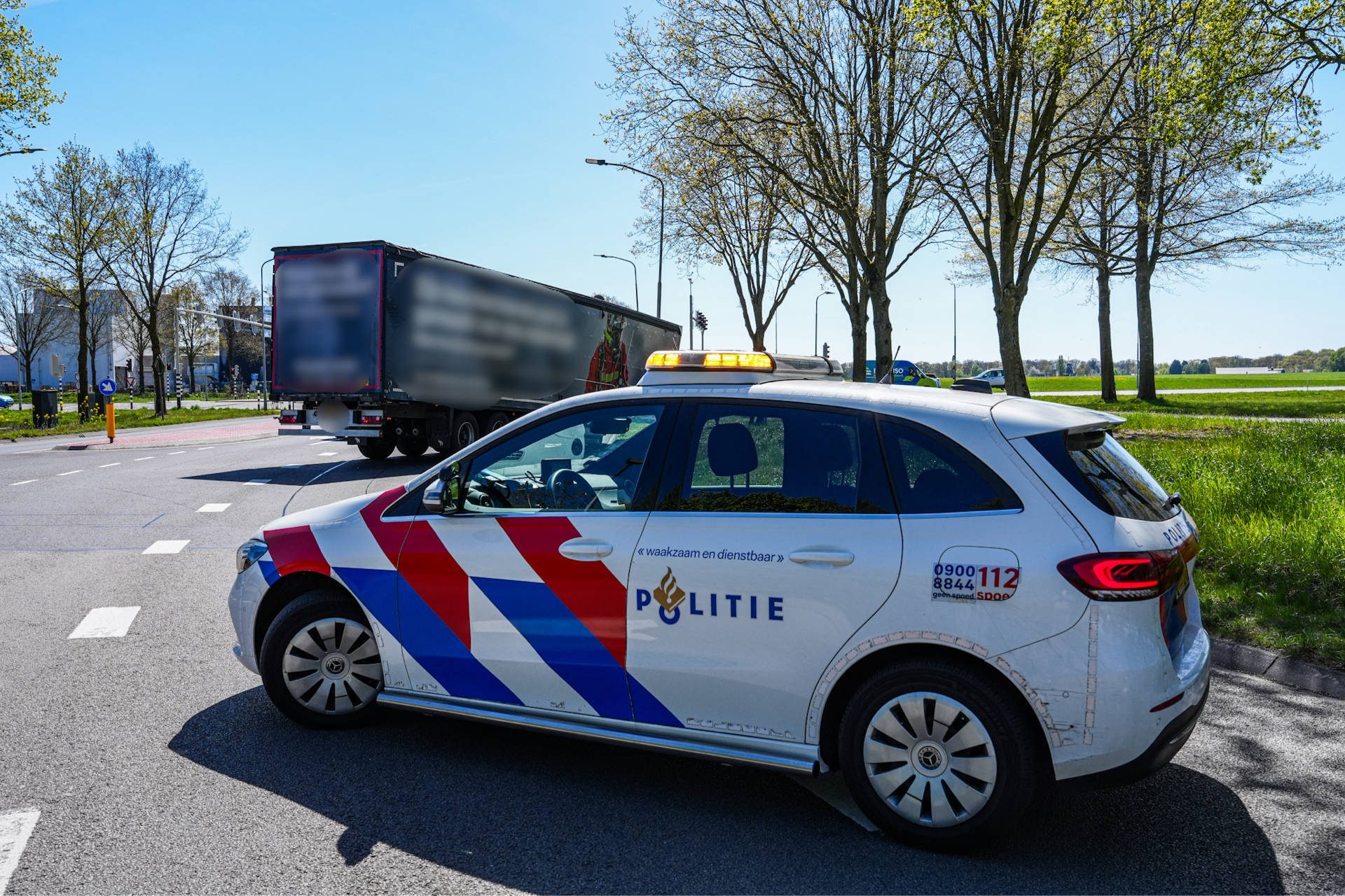 De Nijbracht net voor de kruising met de Rondweg is door het ongeval gedeeltelijk versperd. De politie is ter plaatse.